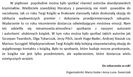 – spotkania z autorami na stoiskach wydawców i w salach seminaryjnych,